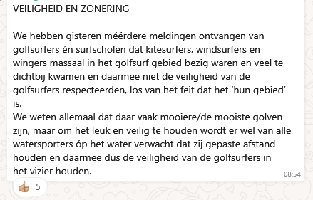 Wat ik zag was dat 1 daar van een windsurfer was …..ik lag er met 4 man in en er liepen best mooie golven….alleen bleven die kitters en windsurfers maar langs ons heen knallen ,zelfs nadat er dus net een ongeluk was gebeurt en we naar ze schreewde of ze toch op wilde tiefen . Blijkbaar snappen die kite/wind gasten niet hoe gevaarlijk en a relaxt t voor surfers is.